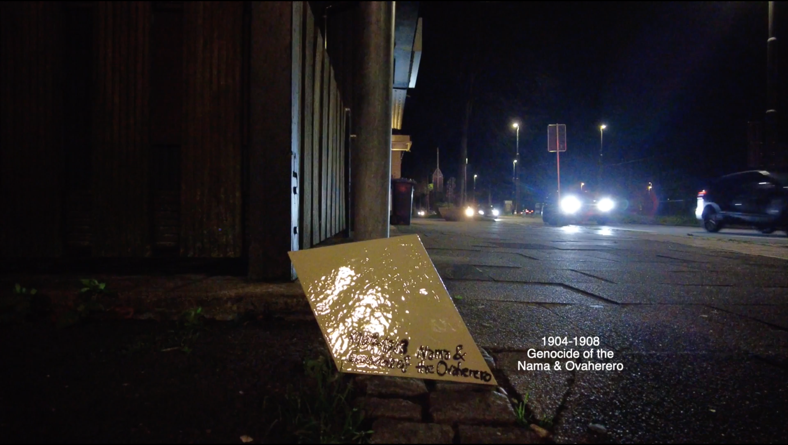 The mosaic Q4 has been carried and placed with Fatou Sillah at the sign of Leutweinstrasse in Walle, Bremen. Theodor Leutwein was a German military officer and the governor of German Southwest Africa from 1894-1905. He was instrumental in putting Nama and Herero people against each other and paving the way for the extermination order that caused the Namibian genocide (1904-1908) known to be the first genocide of the 20th century committed by the German empire.
