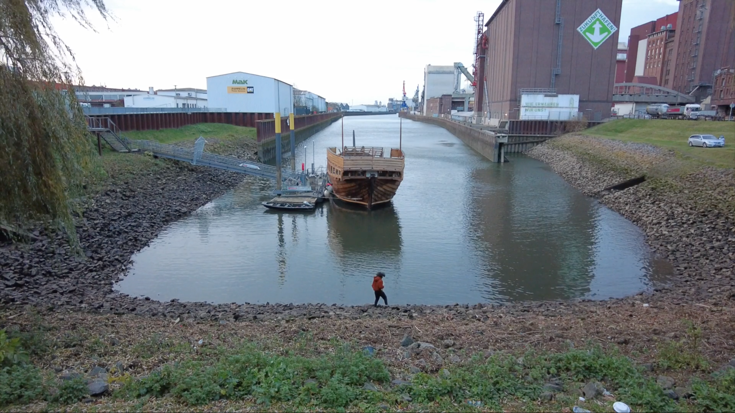 The event started with the reading performance of the text below while trying to reenact the parts of the text that are written from a first-person point of view in Bold. afterward, there is an invitation which was hosted by the collective exhibition Lacuna Inside a Dumpling at Weserbug Museum in Bremen to overwrite the image of the vessel which is being printed roughly in the actual size and laid on the ground. The mural is being donated by the Brinkmann tobacco company celebrating and glorifying Bremen’s colonial role in the exploitation, expropriation, slave labor and etc. worth mentioning that tobacco consumption in Europe dates back to the “discovery” of America in 1942. There were excerpts from the research fragmented in the colorful A3 meant to provide ingredients that could inform collective intervention to the mural imagery.