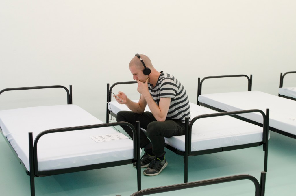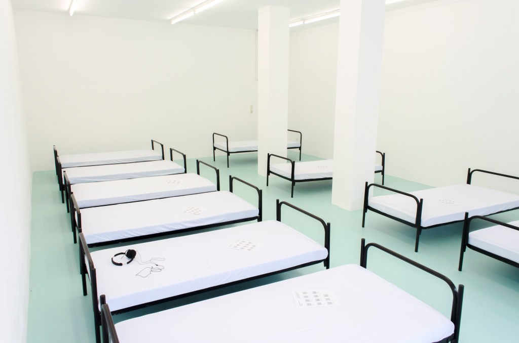This work is a contribution to the class of Korpys/Loeffler room-Installation called “another example of an attempt to come to terms with something” representing a room full of beds, standing next to each other, clean and in order.