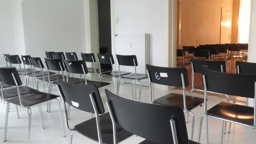 Temporary Dislocation is a response to this invitation to open the private space. To make this happen I struggled with the school (public organization) and I finally convinced them to allow me to transport around 100 chairs to Julias Ida Green just for a weekend (27th and 28 of January 2018), but since the chairs belonged to theory rooms, they had to be returned at the latest at 9 am on Monday, to be ready for the earliest seminar in the morning.